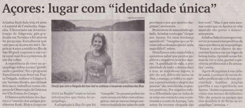 Here it is an article published on the 16th of April edition of Açoriano Oriental newspaper, in which she talks a little bit about her experience in our beautiful Island. Take a look!