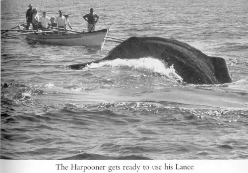 Whalers worked as a community and hunted Sperm whales (Physeter macrocephalus) that were dragged to shore on specialised confected boats that derived from the design of American ones. Azorean whaling boats where 6- 8 m larger and had rows and sails in addition to the boats that were used by American fleats. Using only a lance and strength to kill the whales.