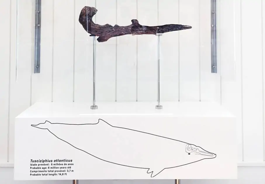 The extinct beaked whale fossil is now exposed at the Porto Pim Whale Factory Porto museum, Faial, Azores.