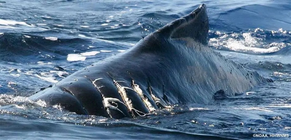 Deep wounds from ship propeller on the flank of a humpback whale (image source www.sanctuaries.noaa.gov)
