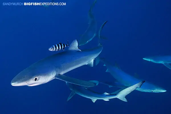 Blue shark diving at Princess Alice Bank in the Azores © Andy Murch/ bigfishexpeditions.com