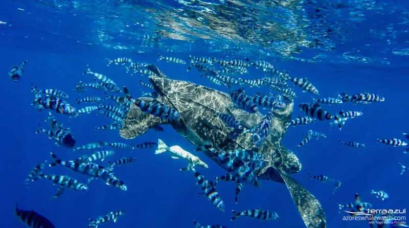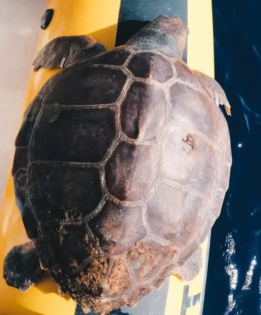 When possible, we measure the turtle and deploy a tag on its fins so it can be identified (see the picture of a turtle tagged by Terra Azul in 2019 below). In the long term, this helps understanding their movements in the Atlantic Ocean and Mediterranean Sea.