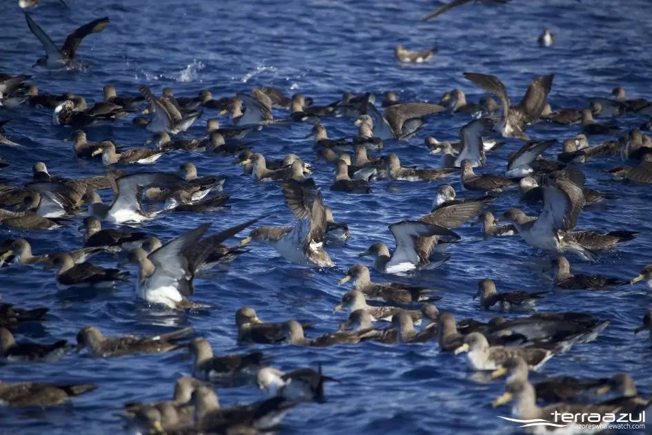 Cory’s Shearwater is a marine migratory species breeding in the Macaronesia region. They are the most representative marine bird species in the Azores Islands, where around 75% of the world population breeds. The English name comes after the American ornithologist Charles B. Cory, while the Latin name calonectris comes from ancient greek calo = « good » and nectris = « swimmer ». That is, Cory’s shearwaters are good swimmers and good divers as they can dive down to 15 meters deep hunting for fish! Cory’s Shearwaters have a flight style very characteristic, with slow and deliberate wing beats.