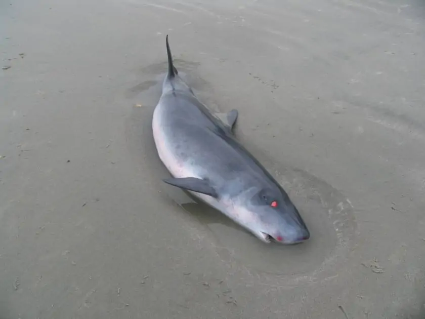 A Dwarf Sperm Whale stranded on a US beach. As for other cryptic species, stranded specimens are a valuable occasion to obtain scientific data on rarely sighted cetaceans. Source: NOAA.