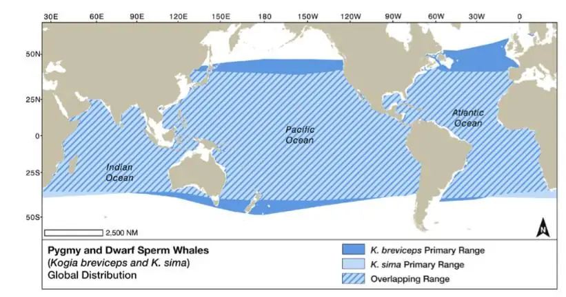 Worldwide distribution of Dwarf Sperm Whale (Kogia sima). Encyclopedia of Marine Mammals IIIrd Ed. Bernd Würsig, I. G. M. Thewissen & KIT M. Kovacs