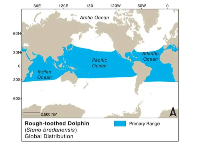 Worldwide distribution of Rough-toothed Dolphin (Steno bredanensis). Encyclopedia of Marine Mammals IIIrd Ed. Bernd Würsig, I. G. M. Thewissen & KIT M. Kovacs