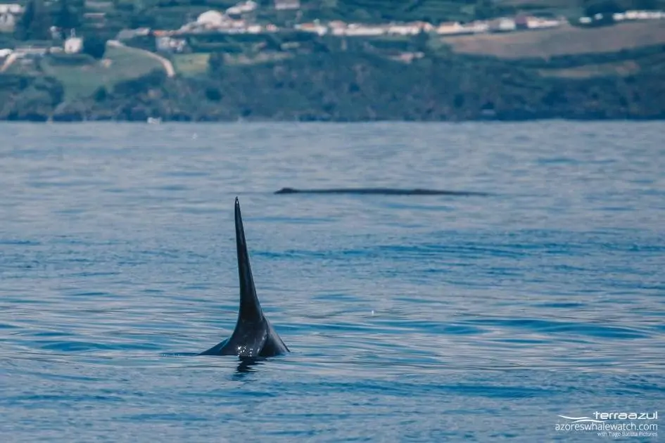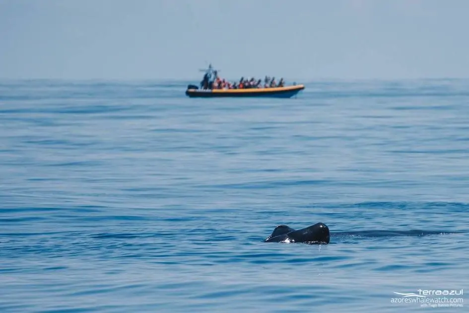 Several species of dolphins have been spotted this morning, including Common Dolphins (Delphinus delphis), Atlantic Spotted Dolphins (Stenella frontalis) and Risso’s Dolphins (Grampus griseus). But what have been at the center of the attention, is indeed the return of quite well-known pod of Sperm Whales (Physeter macrocephalus) which included two young calves, several adult females and even a juvenile that seems to be a young male. The group was socializing a couple of miles outside of Vila Franca do Campo, literally at our “doorstep” 🙂
