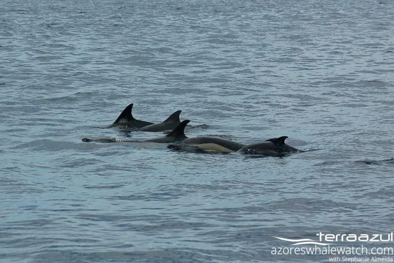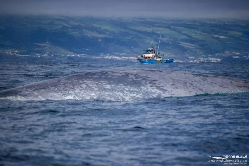 The afternoon trip started with a curious group of common dolphins that played around the boat. However, they were interrupted by an adult blue whale that was calmly swimming by our side.