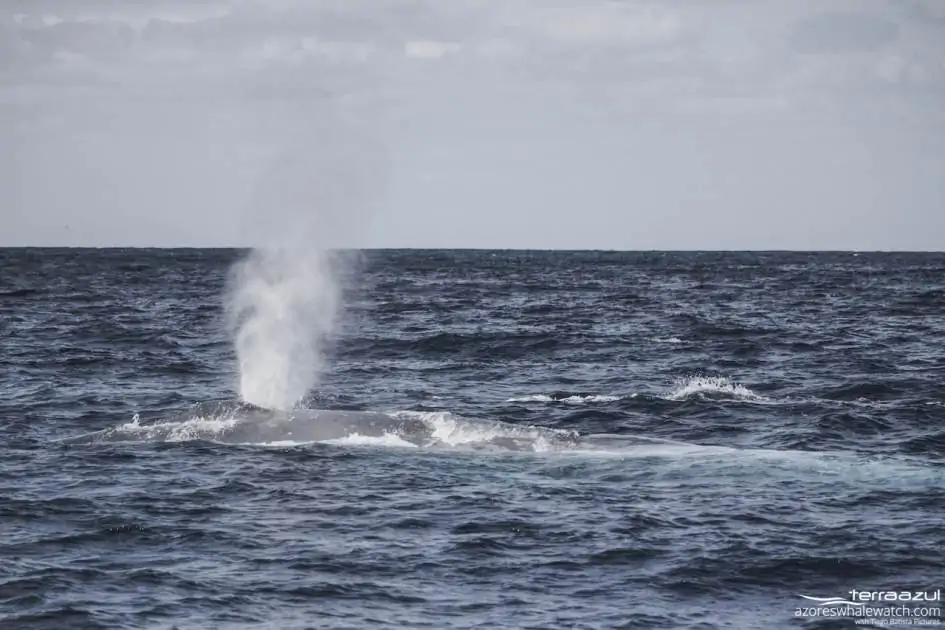 We had 3 Whales with us, 2 Blue Whales and 1 Fin Whale. The best part was when one of the Blue Whales showed the fluke! After a while, we went to see the biggest toothed whale: The Sperm Whale. The one that we saw was not to big, so probably was still a juvenile. A few minutes later, a calf joined us, it was amazing!
