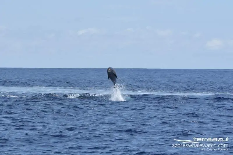 The first species that we saw was a big group of Bottlenose Dolphins. They seemed relaxed/playing with each other and jumping around. Sometimes we could see groups of 3 dolphins jumping together very close to each other. A very carismatic group!