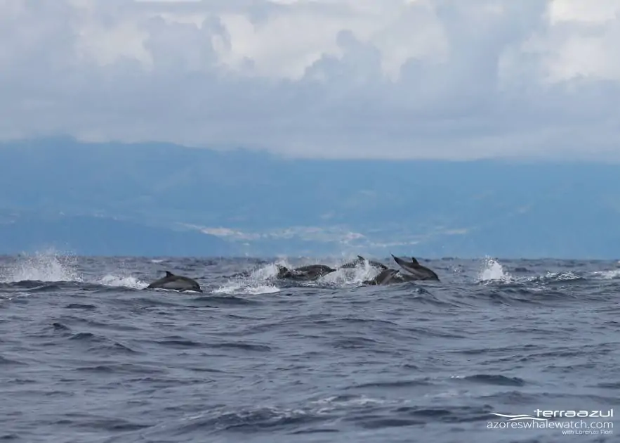 In the afternoon we first encountered the same Sperm Whale of the morning. After this we had a resting group of Bottlenose Dolphins. To end the lovely afternoon we came across a huge group of Striped Dolphins (Stenella coeruleoalba). They were at least 250 individuals, jumping or almost flying over the ocean.