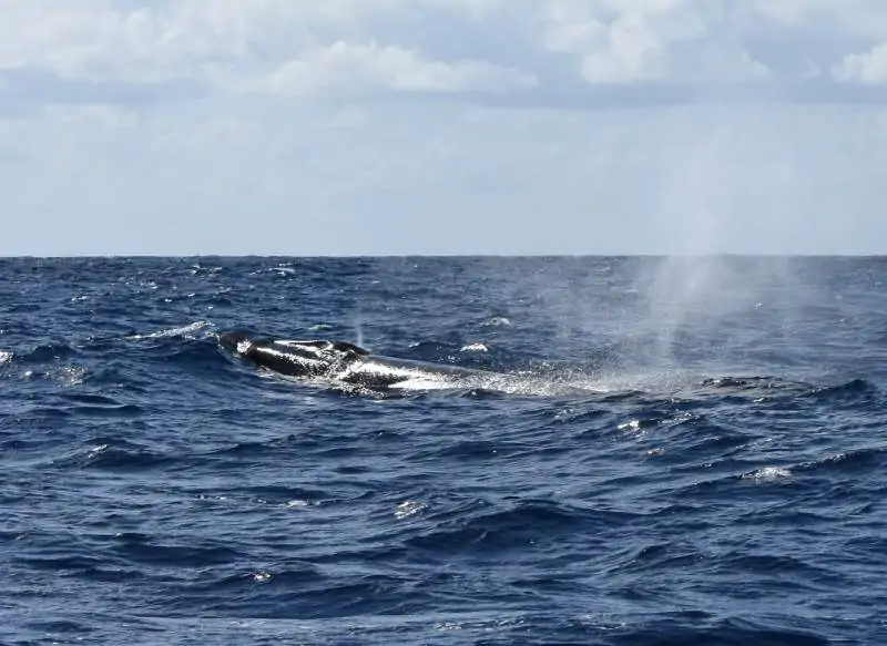 The highlight today were of course the Sei whales! In the morning, our lookout could see 4 of them spread out and we were so lucky to see 2 of them 😀 They were being very fast, spending lots of time underwater and changing directions – so they were a bit hard to find. But patience pays off and finally they decided to come up and delight everyone on board!