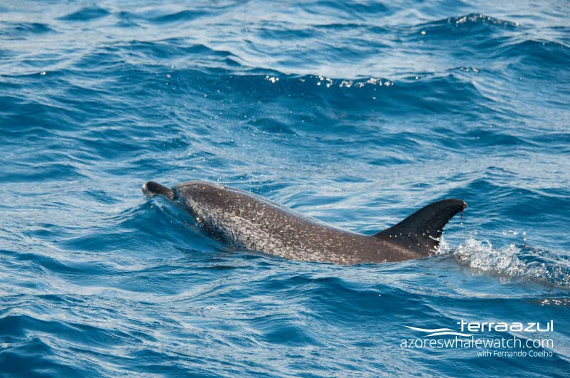 Afterwards, in front of Vila Franca do Campo we sighted a big group of about 40 Common dolphins, quite relaxed around of the boat. And the ocean was much calmer!! 😀