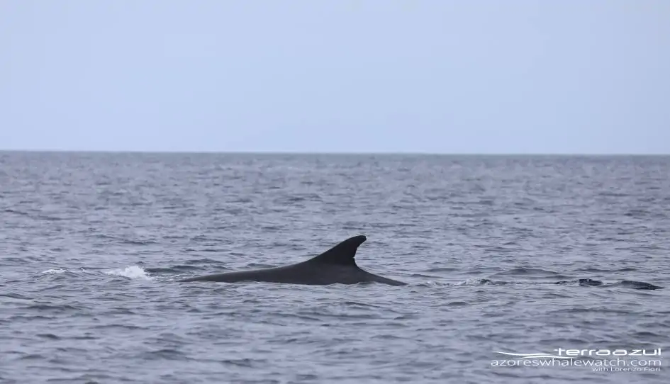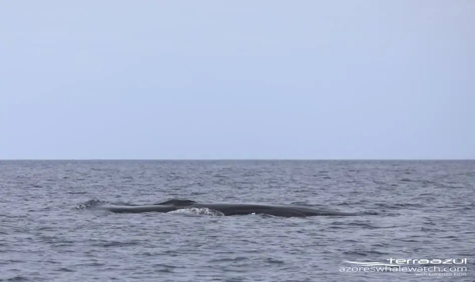 A mile further away, we had a short encounter with one of the most rarely seen cetaceans: Beaked Whales. We identified them as Blainville’s Beaked Whales (Mesoplodon densirostris) but it is always complicated to be 100% sure as they are extremely elusive and their family includes several species (21 worldwide, of which 6 are sighted here in the Azores). Click here to see our previous post about these amazing creatures!