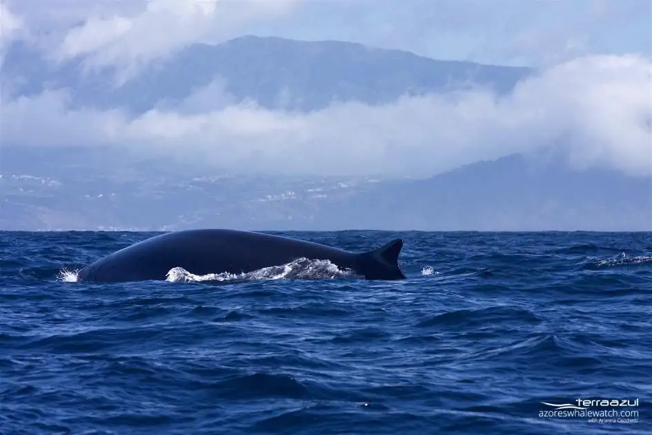 On individual had an ectoparasite hanging out from its body, likely a parasitic crustaceans known as Pennella. These parasites, which can reach a length of 30cm, embed their heads into the whale skin and blubber and feed on their host’s blood. Usually, only few parasites can be observed attached to the host’s body, but infested cases ca also occur. Despite the Pennella attached to its flank, this fin whale was looking good, and kept feeding until it disappeared from our sight.