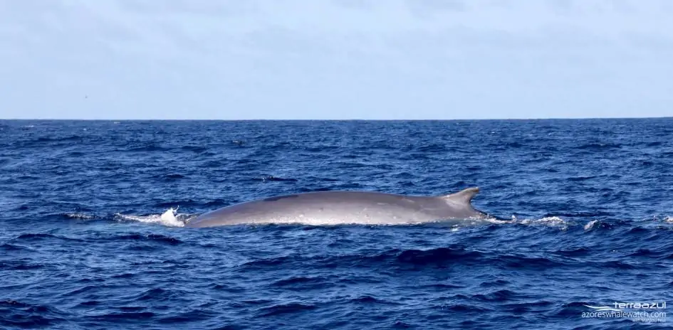 Terra Azul drone captured an aerial view of the three whales while slowly cruising about nine miles South of the shore of Vila Franca do Campo, São Miguel Island. You can also observe how one of the adults has a lighter skin coloration and a quite U-shaped head, characteristics that might indicate some form of hybridization with Blue Whales (Balaenoptera musculus). We know that hybrids between the two species exist and that they can be fertile, but only genetic analysis would be able to confirm such hypothesis.