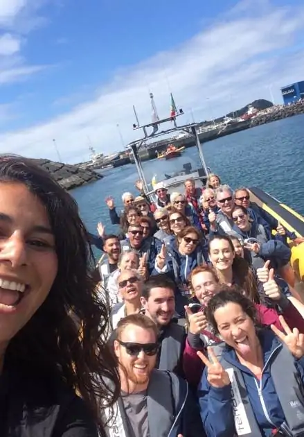 After communication with our lookout André we continued to another group of dolphins, this time a group of bottlenose dolphins (Tursiops truncatus) made it clear to us that they are the masters of the sea and we are only the spectators in this vast territory. This was very clear to our enthusiastic whale watchers who understood the message and observed how different it is to view animals in their natural habitat than in a enclosed environment.