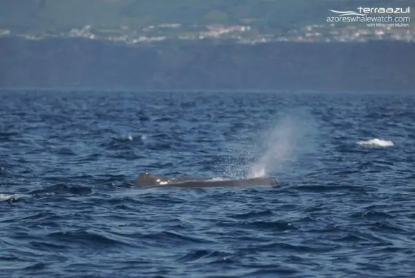 A few minutes later we saw a Fin Whale feeding so she was always up and down. Later on another Fin Whale also feeding. Almost at the end of the tour, we saw 3 Fin Whales, today was a day full of these whales 🙂 One of them was very big, you can see them on the live that our skipper Tiago made, https://www.facebook.com/azoreswhalewatch/videos/1619511831472092/