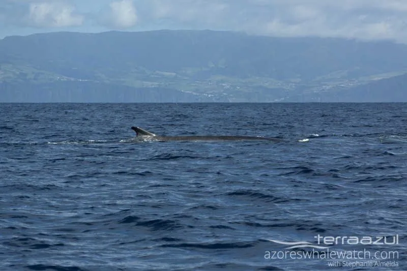 Strong winds keep blowing off the south coast of São Miguel, making it harder to go out at sea. However, this morning we decided to give it a try as Filipe spotted fin whales not too far from the coast. Slowly we got to the area and among the big waves we were able to enjoy the sight of two fin whales, one of which was particularly large.