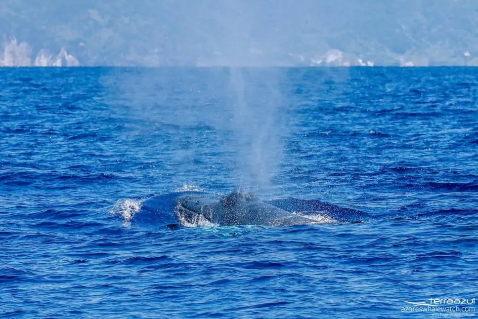 We navigated close to coast, our lookout had radioded to let us know that a whale blow had been sighted, we thought it was pretty likely a Sperm Whale since Baleen whales are rare in Summer. But guess what…. it was a Humpback Whale (Megaptera novaeangliae), Woowwwww !!! I could not believe it, she was tail slapping and interacting with the Atlantic Spotted Dolphins (Stenella frontalis). She was just there following the dolphins and breathing, we were really able to see its ventral grooves under water, since they change the color of the water changing it from deep blue into turquoise colors. I guess we were really not expecting it but my God what a great day.