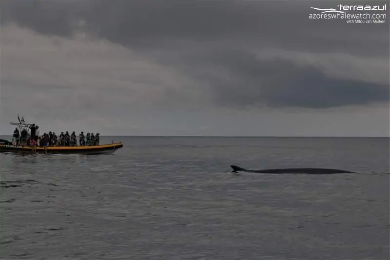 Later on, we saw a group of calm resting Fin whales near the coast. We could observe their high blow several times. What made it very special was that they were diving under our boat and coming up on the other side several times. A moment never to forget!