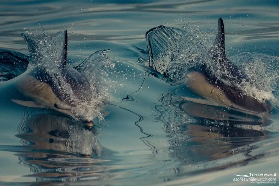 Two Common Dolphins (Delphinus delphis) involved in fast chasing and socializing activities off Ponta Garça shores.