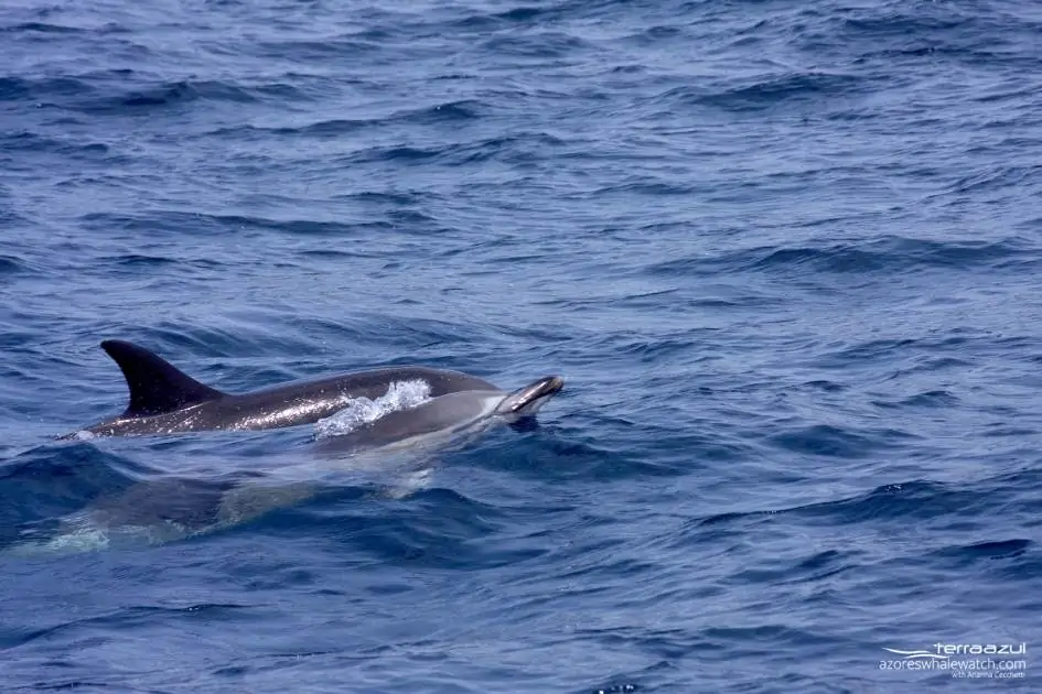 Nice weather to go out in the ocean today! In the morning we were able to see a very nice group of common dolphins, with some individuals leaping out of the water and showing their typical colouration. Few of them had completely pale dorsal fin, contrasting with their dark back, others had completely dark fins and others showed a lighter patch. This variation in colouration seems to be stable over time and have been suggested being a possible tool to identify single individuals, either alone or together with other markings present along the edges of the dorsal fin. However, in common dolphins these notches and nicks are not that frequent.
