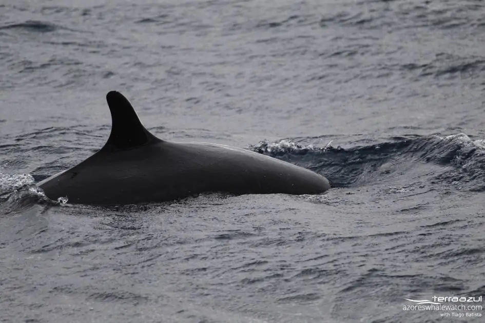 The small group was active and included a large male and a calf. After showing up few times next to the boat and always with sudden movements, the group decided to disappear into the deep ocean. A short but memorable encounter 🙂 Besides this migratory and “random-to-be-seen” 😉 species we saw the two resident dolphin species, the Risso’s and the common dolphin. The former were busy feeding, while the latter were busy socialising.