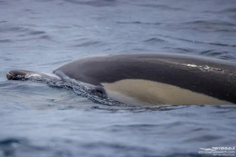 Today, we had very special water conditions at the start of our afternoon-tour. The sea was almost flat and the visibility was phenomenal! When we met our beloved friends, the Common dolphins, we were able to see their diving skills really clearly! They were calm today, but stayed with the boat and we all could lean over the sides to watch them. I found that really special! Also, we could see a really tiny young!