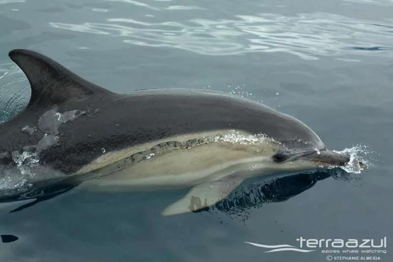 Suddenly a little group of about 5 Common dolphins appeared and showed themselves to us for a couple of minutes while interacting with each other. Then we headed 4 miles out to a “Sperm whale zone” This time we were hopeful to see some whales because they are our more reliable species, meaning, they mostly come up at the same area where they last dove down. But…we cannot promise!