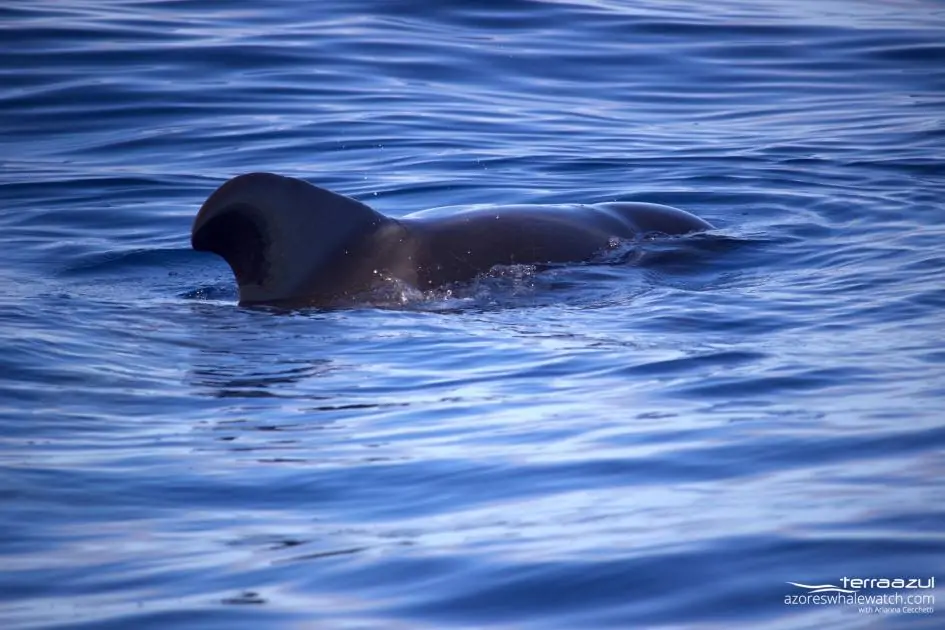 Nice morning today with many sperm whales not far from the southeastern coast of São Miguel. Some were socialising turning sideway and spy-hopping others were more relaxed. There were also few calves and at least one juvenile. After enjoying the sight of their powerful blows and bodies at the surface, we moved offshore to meet the short-finned pilot whales. The group was spread out and included all in all about 20 individuals. They were all logging and, as usual, we turned off the boat engine to listen to their synchronised breathing. Nature is beautiful! 😀