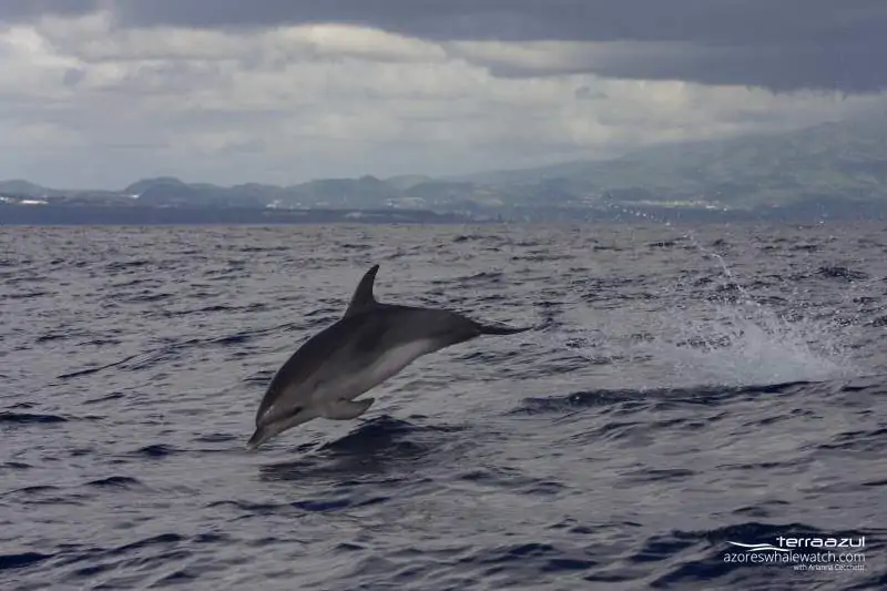 I have a picture here from an earlier tour of us, where you can see the Striped dolphins really good: