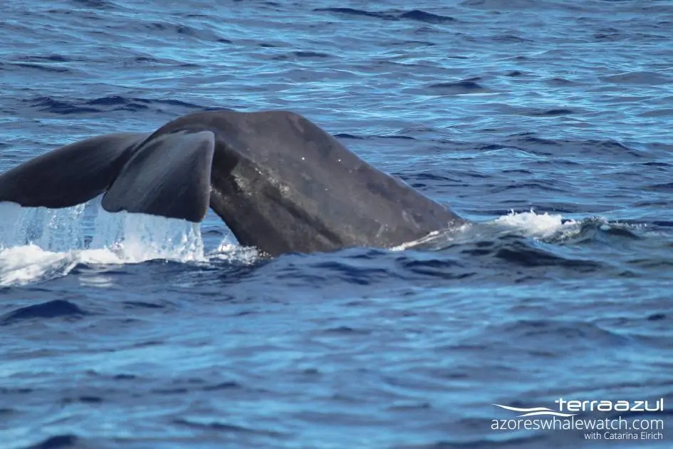 After some observation the whales said “Goodbye”, showing us their flukes and left us for a deep dive. In the afternoon tour we saw the Sperm Whale pod again and also Atlantic Spotted Dolphins 🙂