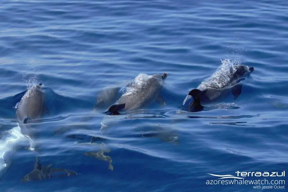 Some miles further away we bumped into a pod of about 250 Atlantic Spotted Dolphins (Stenella frontalis). When I spoke about this species in the briefing, I promised the guests that it would be a veeeeery friendly encounter. And oh boy, I was not wrong. The dolphins came to us in bulk, swimming and jumping so fast. We were stuck right in the middle of them 🙂