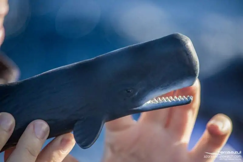 Then we moved to another area where we spotted one more mother and calf Sperm whale, that also dived pretty soon, showing those beautiful flukes again. Eventually our lookout spotted Bottlenose dolphins, but once we reached the area where the dolphins were supposed to be, suddenly a big Sperm whale made its jump out of the water!!