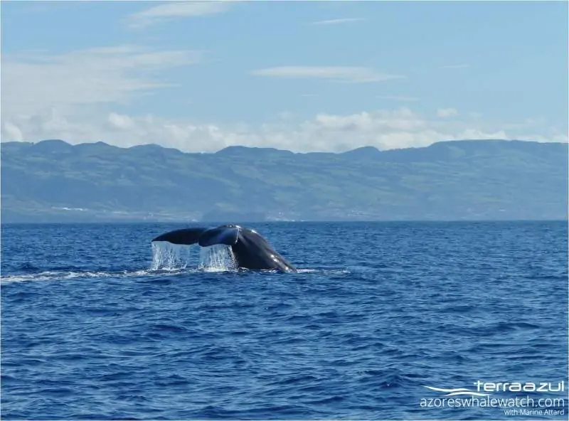 On our way back to the Island of Vila Franca, nature donated us a little gift today 🙂 : Some Beaked Whales just next to us! With the perfect flat ocean conditions we were able to see our rare visitors for a short period of time. As we did not see the head part (you can see the back & the dorsal fin on the cover picture) we were not able to tell the exact species, but most of the times what we see here are Blainville’s Beaked Whales (Mesoplodon densirostris).