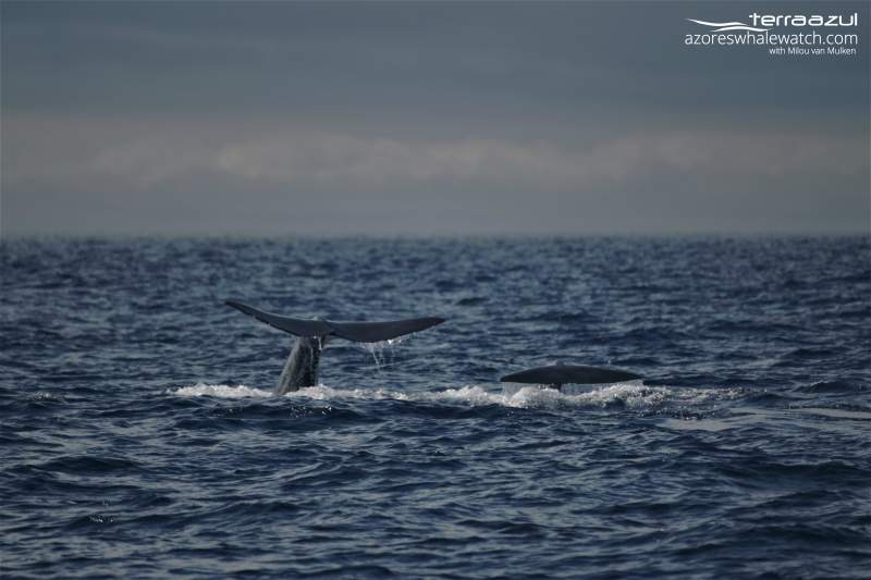 Today on the ocean we encountered two species that we are very familiar with: the largest toothed cetacean, the Sperm Whale (Physeter macrocephalus), and one of the most abundant species of dolphin in the world, the Common Dolphin (Delphinus delphis). These two species occur in the Azores archipelago year-round. From January to December.