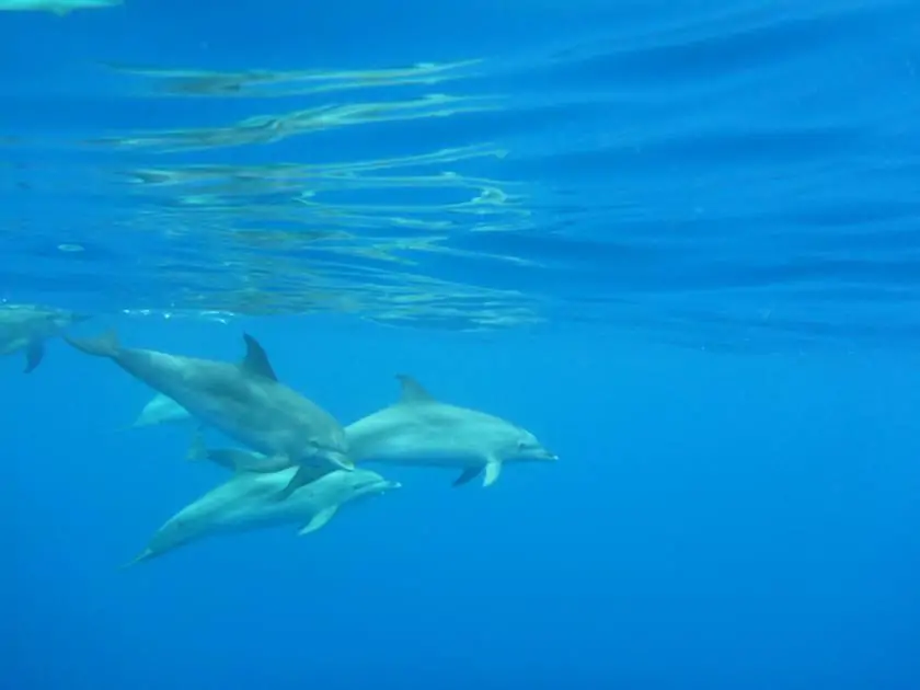 We were honestly so lucky with the weather: calm, not too hot and on top of it a very clear waters that allowed us to see the dolphins several meters down! Because the spotted dolphins were the first species that we saw. The group seemed to be resting together with the Cory’s Shearwaters but when we arrived the whole pod came towards us – like they were welcoming us! They were so freindly and close that I managed to make the underwater picture you can see on top of this blogpost 🙂