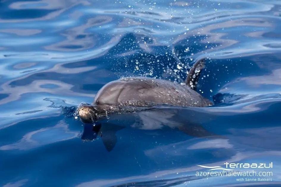 Also during the day, we spotted the agile Striped Dolphins (Stenella coeruleoalba) and Atlantic Spotted Dolphins (Stenella frontalis). The Striped Dolphins were porpoising on the surface. As usual, the curious Atlantic Spotted Dolphins approached the boat while socialising with one another.
