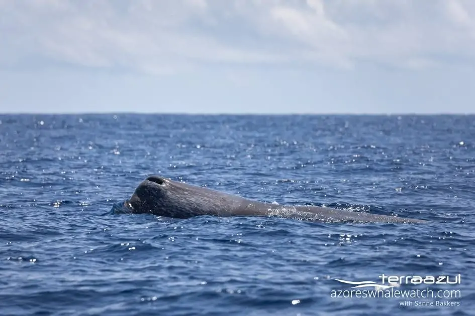 Our lookout guided us towards an area so that we could first spot two female Sperm Whales (Physeter macrocephalus) logging and socialising together. As they went for a “shallow dive” we continued our tour and saw not too long after two bigger, Sperm Whales. While we were watching them, the two previously encountered females joined us and we had the chance to watch these 4 amazing animals at once.