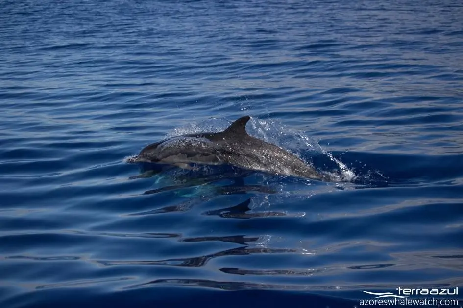 Then our lookout told us about the a Sperm Whale (Physeter macrocephalus) a bit more far out and so we went..After riding some minutes we found..it was resting between forage dives and then when recovered the energy went for another dive! We were listening the clicks with our hydrophone and then all of a sudden, towards the horizon we could see a big Sperm Whale jumping 3 times!