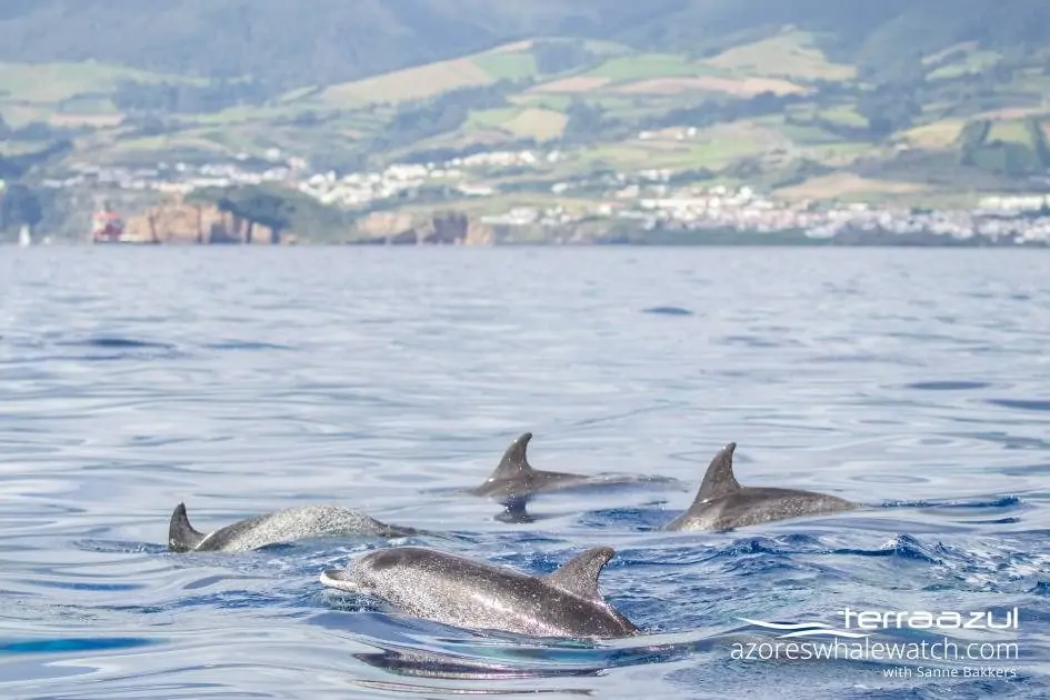 We encountered a pod of jumpy and curious Atlantic Spotted Dolphins (Stenella frontalis) looking adorable next to us and surfing the wake of the boat.