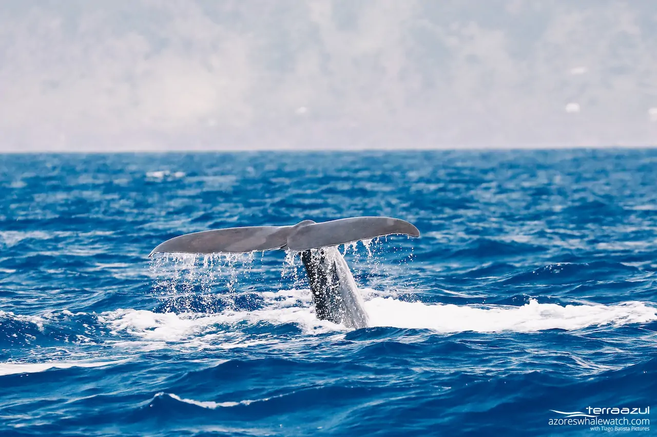 We started with the Sperm Whales (Physeter macrocephalus). When we arrived we put the hydrophone on the water and we knew that we had more than one Sperm Whale in the area so we just needed to wait. A few minutes later we sighted the the first whale…it was young one, and then 2 more joined to the surface. After some time with them we could see a tail…sign of a deep dive.