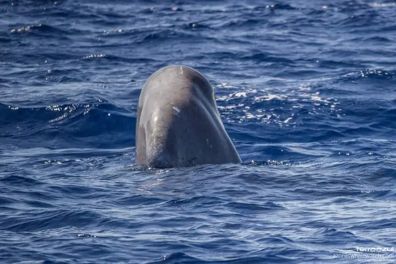 Our lookout called us to see something slightly bigger… and after a short boat ride we found a mother Sperm whale with her calf! The nice thing was that both of them spyhopped – putting their heads out of the water – so we observed them while they watched us aswell. At a certain point one of them decided to just lift the fluke horizontally out of the water. That was really special, as its such a playful behaviour. CUTE!
