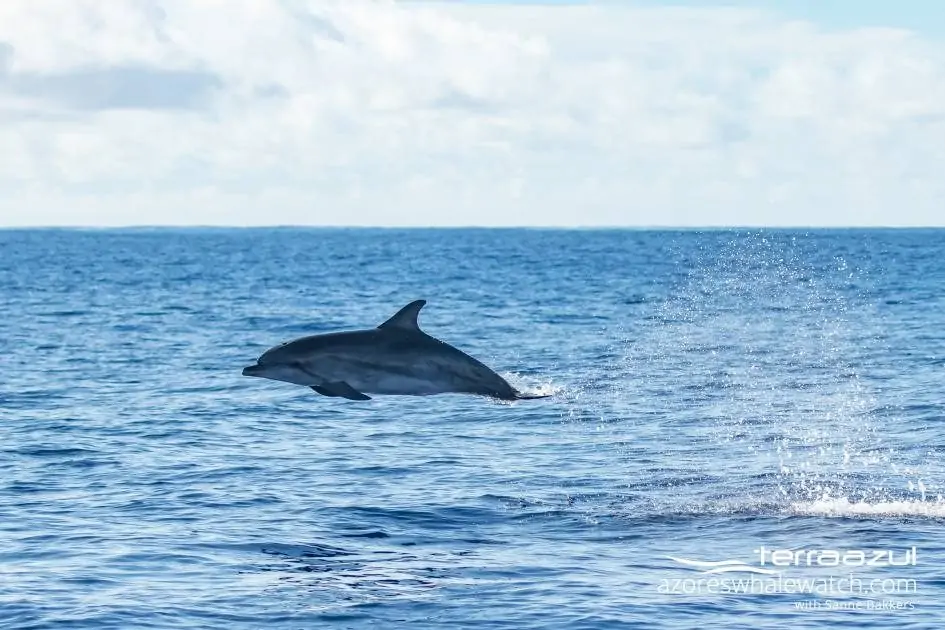 The next species we encountered were the Atlantic Spotted Dolphins (Stenella frontalis). It was an active group of at least 100 dolphins, including many calves. They were everything but shy, and even some mother-calf pairs were seen leaping alongside the zodiac.