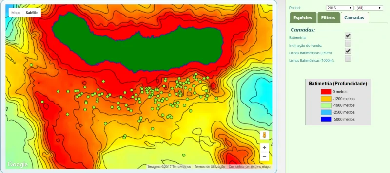 Distribution of 2016 Risso’s dolphins sightings with bathymetric information