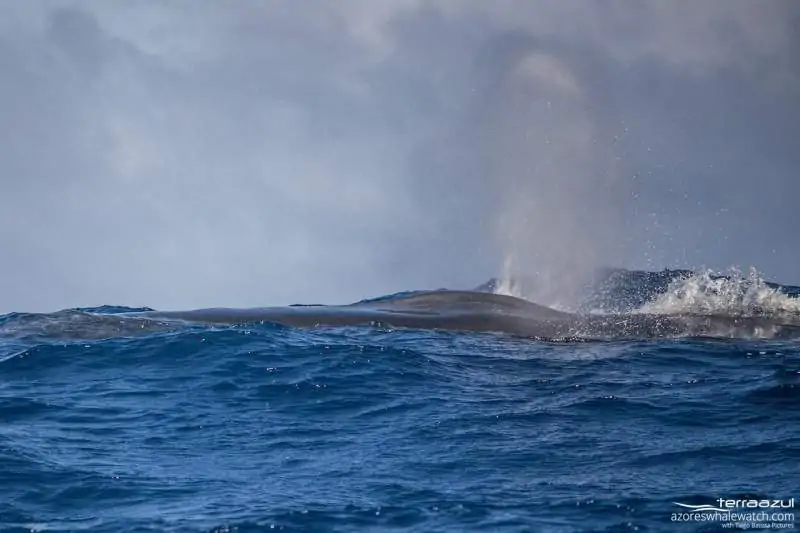 In the afternoon we went towards Povoaçao where we encountered 4 fin whales! 3 large adults and 1 juvenile. At first the whales were resting, just hanging beneath the watersurface without moving much. Their shadows were visible during all time. Then they slowly initiated their travel to the east, while surfacing for more then 30 minutes near to out boat! It was perfect whale watching.