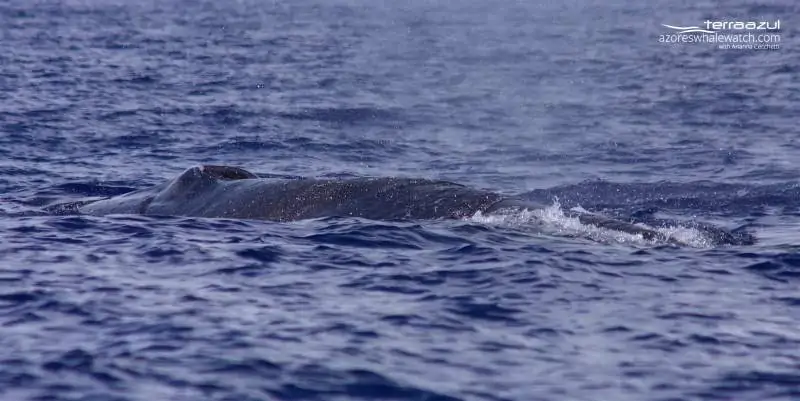 To complete the day we also saw a sei whale. It was an adult, which was travelling and eventually started foraging too. We had to go quite far out to see it and the swell was quite high so before confirming it was a sei whale and not a Bryde’s whale we had to wait few surfacings as the head was often covered by the water.