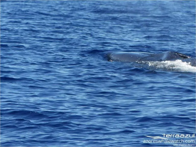 Although my Portugues is little and I am trying to improve it, I was able to understand Filipe, our lookout, saying at the radio “baleia de barba! Baleia de barba!”. It meant that we had a baleen whale outside. So, let’s go for it!! It was probably the same whale as yesterday afternoon, and today we were able to confirm the species: it was a sei whale. With Nuno the skipper, we checked the GPS and we realized that, the whale was circling around the boat. This is a sign it was foraging as well as Risso’s dolphins earlier, but it feeds on krill, not on squid.