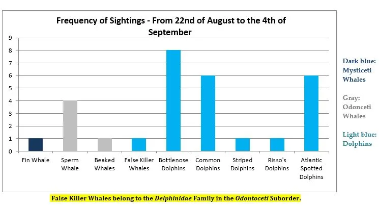From the 22nd of August to the 4th of September we sighted 9 different species of Cetaceans!